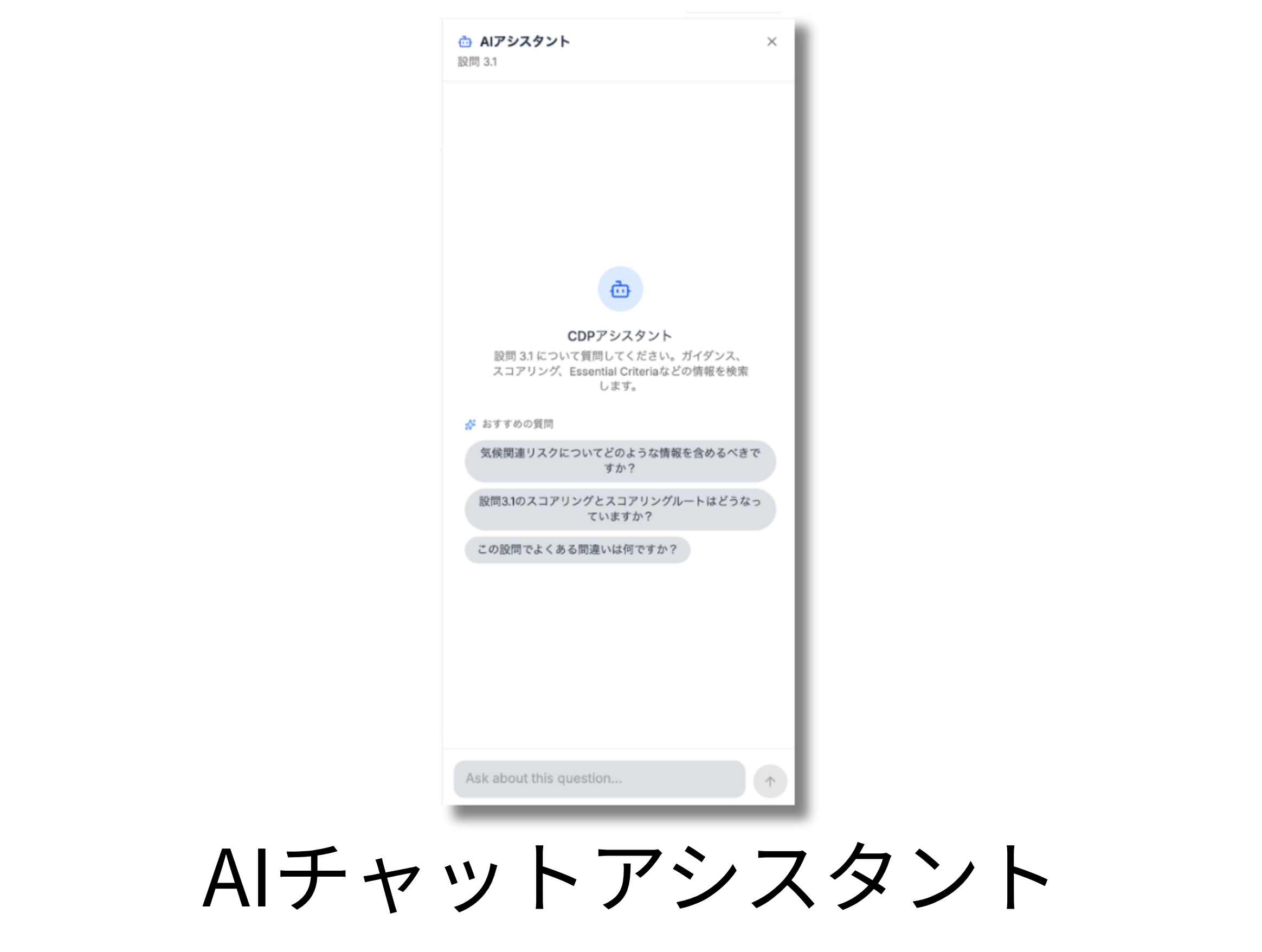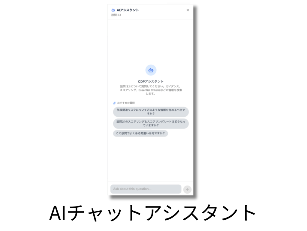 「aiESG for CDP」では回答文の自動生成は行っていません。AIによるハルシネーションのリスクをCDP側が懸念していることもあり、現時点ではAIによる自動回答生成(ライティング)機能の実装を控えています。